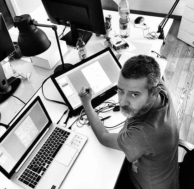 A designer and illustrator from Lecce, he has published several graphic novels and collaborated as an illustrator with Auzou, 7 Magazine (Corriere della Sera), LaMantice, GUS, Il Sostenibile and Liber Magazine. He teaches the language of comics.